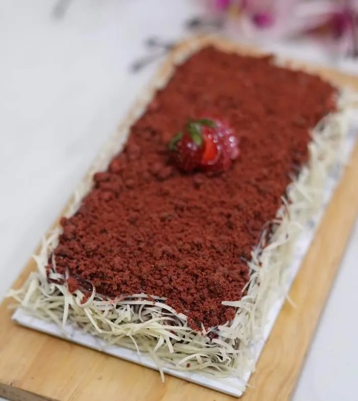 LAYERS OF RED VELVET BROWNIE, CREAMY OREO TRUFFLE, AND